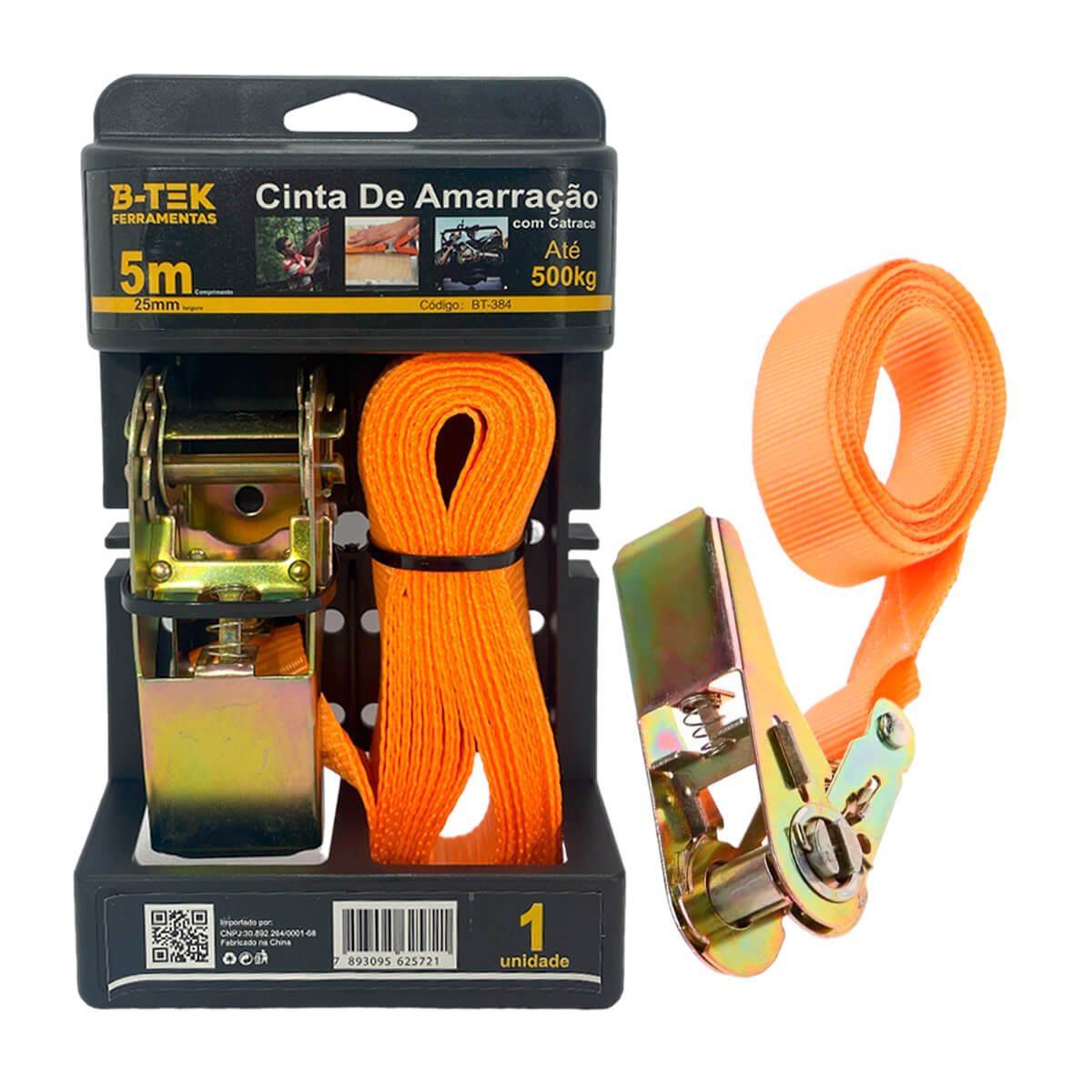 O Kit Cinta para Carga vem com uma cinta e unidade de catraca reforçadas, cinta com 5 metros de comprimento e 25mm de largura, suportando até 500 kg. Ideal para amarração de motos, bicicletas, bagagens, caixotes e mudanças em geral.