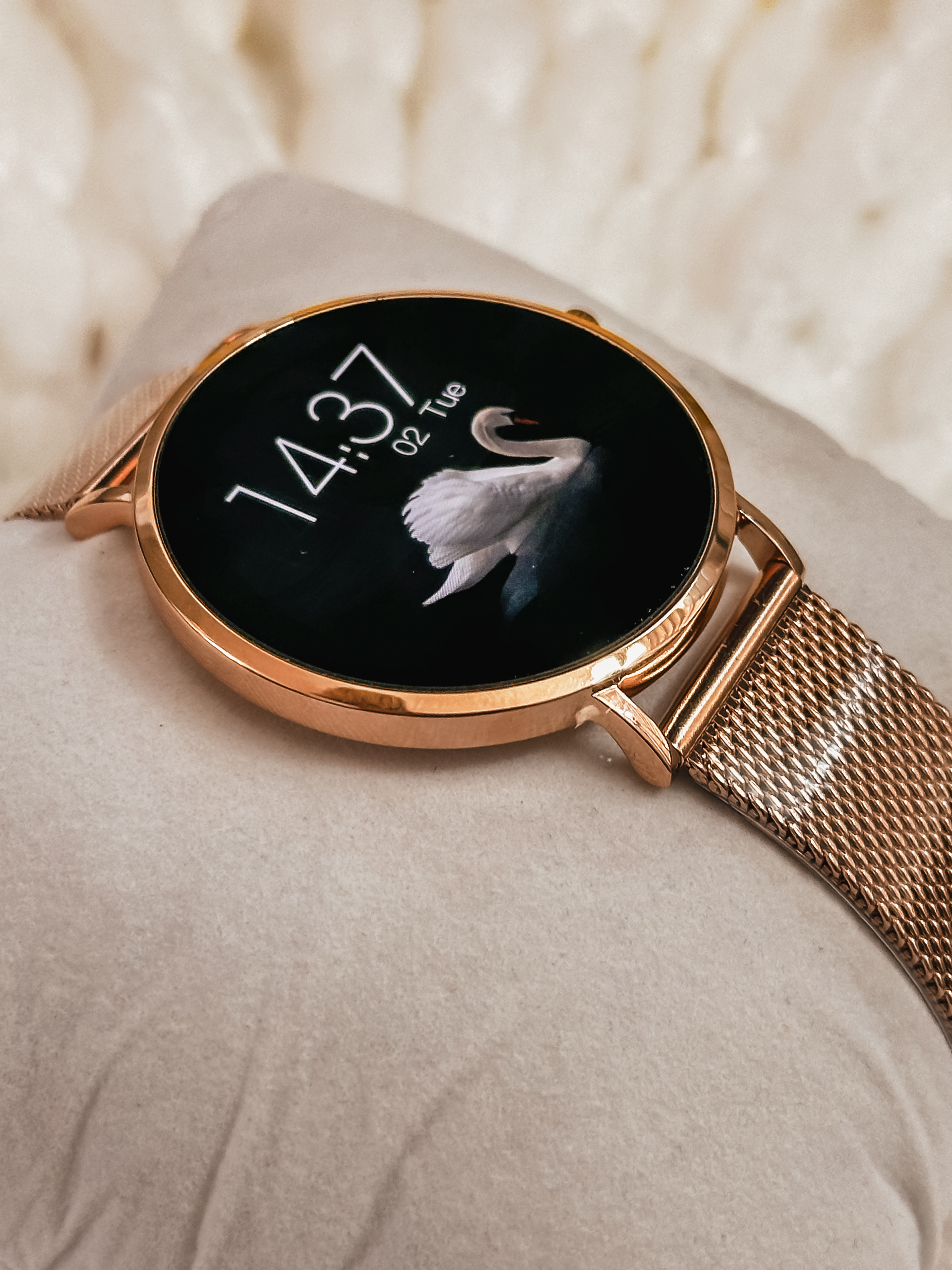 Um smartwatch que exala elegância e sofisticação, inspirado na grandeza da realeza clássica e nas mais tradicionais joias da família real, ROYALS CLASSIC foi criado designer único, fino e luxuoso sendo a união perfeita de bom gosto e tecnologia, contando com sua tela AMOLED de alta resolução, revestimento Gorilla glass genuíno e caixa de aço inoxidável 40mm. Viva o seu tempo com a real tecnologia Royals Classic.
